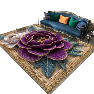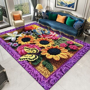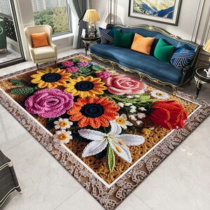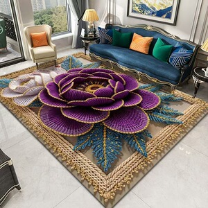 跨境TEMU立体高级感水晶绒花卉家用客厅地毯耐脏卧室民宿满铺地毯