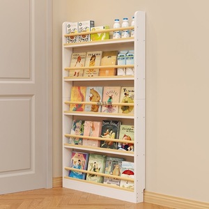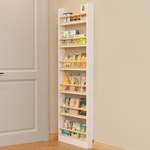 门后书架家用卧室置物架靠墙落地多层收纳实木壁挂儿童书柜窄边柜