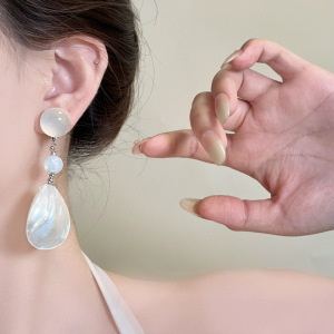 漫海!夏日透亮海岛度假风贝壳流苏耳环女高级感夸张轻奢耳钉耳坠
