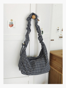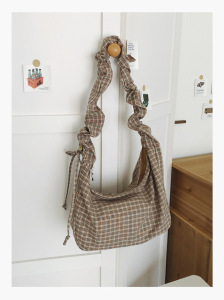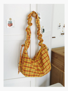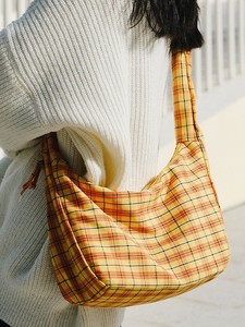 新款韩系ins高颜值清新甜美格纹托特包女轻便逛街大容量斜挎包