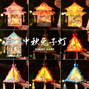 中秋节灯笼国潮汉服手提发光宫灯 儿童手工diy材料包古风花灯摆摊