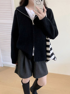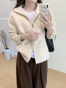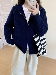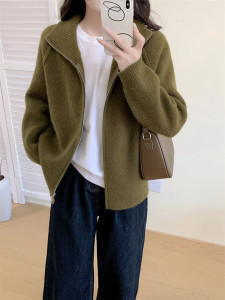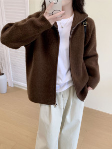 韩版2025年秋冬新款毛衣外套女简约宽松立领拉链毛针织开衫上衣女