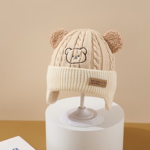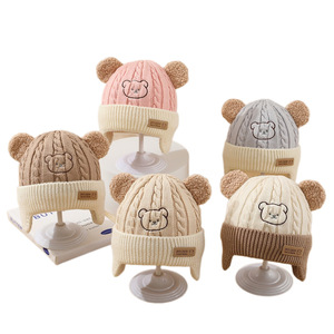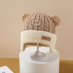男女宝宝秋冬季小熊针织帽儿童超萌保暖护耳毛线帽可爱婴儿帽拼色