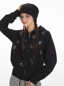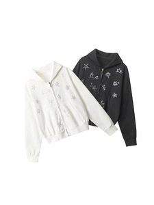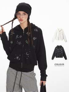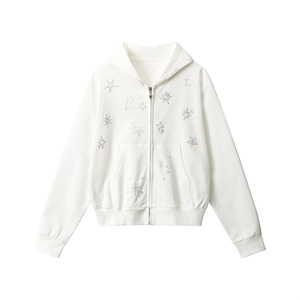 HeyHenry 美式烫钻开衫拉链连帽卫衣女2025秋季休闲长袖潮牌外套