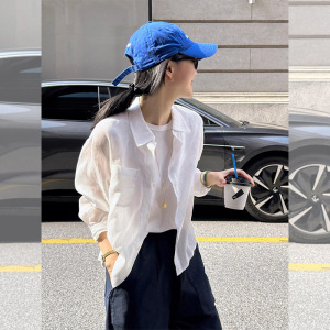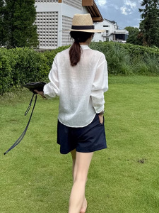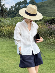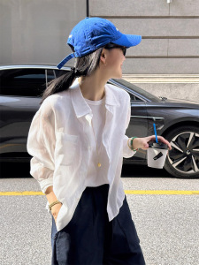 白色天丝亚麻上衣防晒外套女士休闲气质夏季短款长袖衬衫早秋穿搭