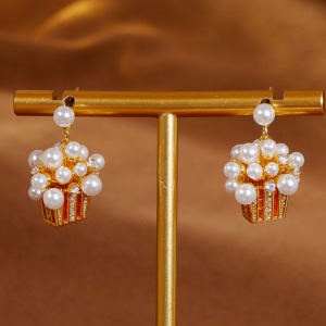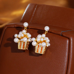 小众高级感爆米花珍珠耳钉女轻奢复古个性独特时尚百搭耳环耳饰品