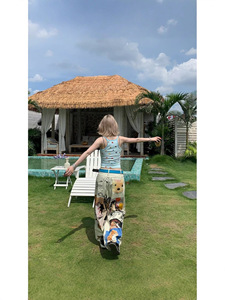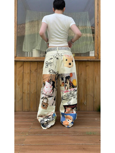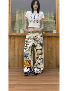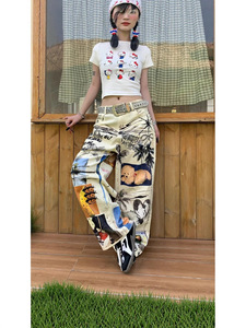 外贸数码印花休闲牛仔裤女夏新款高腰宽松显瘦百搭直筒阔腿拖地裤