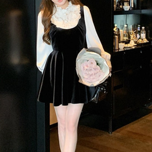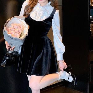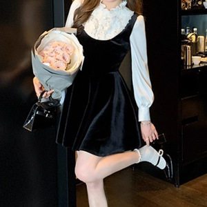 赫本千金风大U领丝绒背心裙法式黑色连衣裙吊带裙秋季外搭黑裙冬