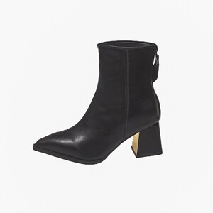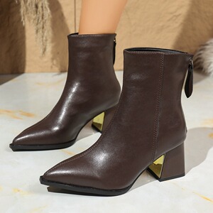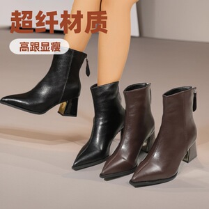 复古马丁靴小个子百搭秋冬新款高跟鞋金属头粗跟尖头女靴瘦瘦靴