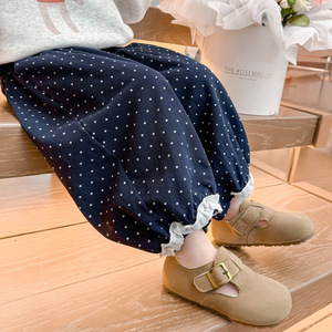 女童裤子早秋款2025新款儿童洋气时髦春秋韩版波点女宝宝直筒裤子
