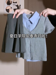 初夏搭配一整套女大方得体穿搭小个子韩系千金学院风套装连衣裙子