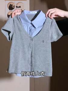 灰色上衣+灰色短裙 【初夏搭配套装女/小众不撞款穿搭/韩风chic/小清新中式国风/休闲/洋气时尚减