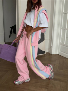 2025新款休闲撞色连帽卫衣直筒长裤两件套辣妹休闲运动粉色女批发