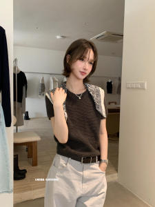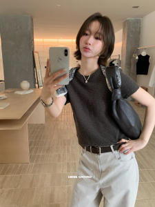 IMISS 韩标!2025秋装新款韩系简约舒适圆领短袖针织衫短款H01158