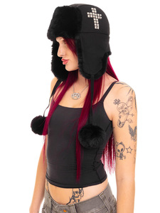 2025秋冬欧美跨境服饰十字架烫钻帽子可爱保暖雷锋帽Y2K亚文化