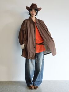 [识时]新品轻松休闲简约三防单排扣翻领长袖宽松风衣外套女V9112