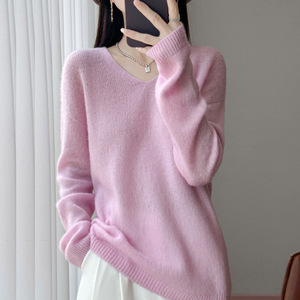 天丝羊毛针织衫女式V领圆领套头内搭小众百搭设计感纯色长袖打底