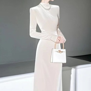 2025新款冷淡系独特别致裙子法式气质漂亮高级感白色丝绒连衣裙女