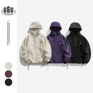 GIRLLLL日系复古露营风摇粒绒套头上衣休闲连帽卫衣男加绒外套W61