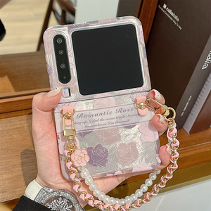 锡纸纹【粉色玫瑰花】+双头编织皮绳珍珠手提链(卡片)