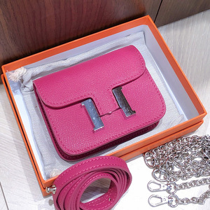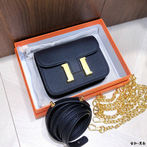 迷你康康包H扣手掌纹猪鼻子链条包真皮女包mini口红腰包小方包