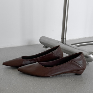 不累脚舒适秀气小坡跟头层牛皮2025秋低跟通勤尖头真皮浅口单鞋女