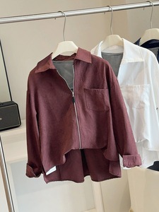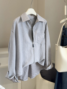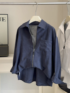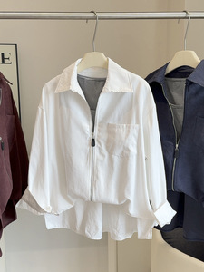 假两件条纹背心拼接Polo领拉链衬衫女秋季洋气时尚显瘦百搭上衣潮