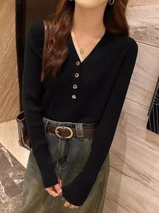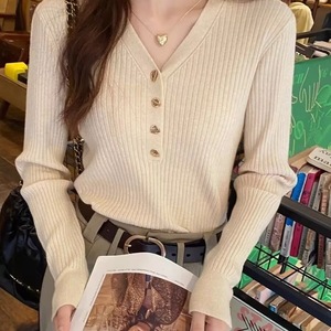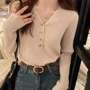 高级感V领针织打底衫女秋冬2025春季坑条洋气软糯毛衣ins内搭上衣
