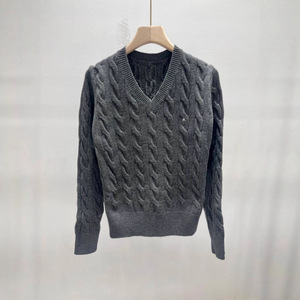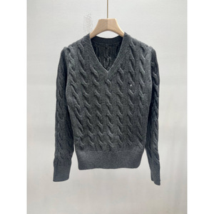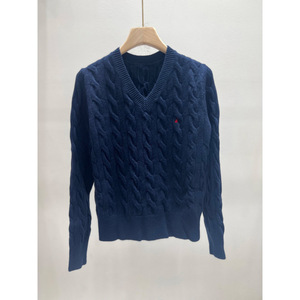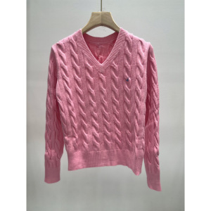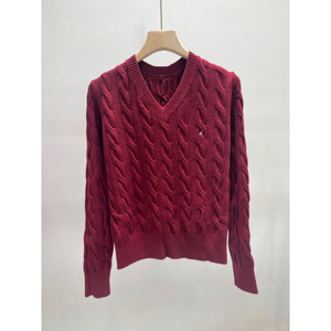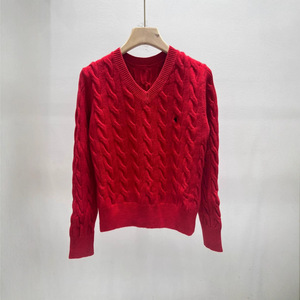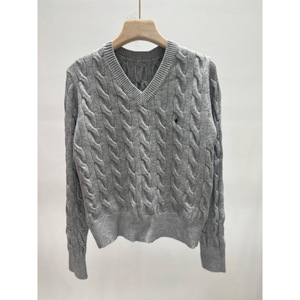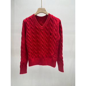 2025年早秋新款POLO小马麻花多色针织长袖V领套头宽松百搭女上衣
