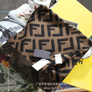 高版本FD羊绒围巾字母ff奶茶色羊毛披肩明星同款双面保暖围脖秋冬