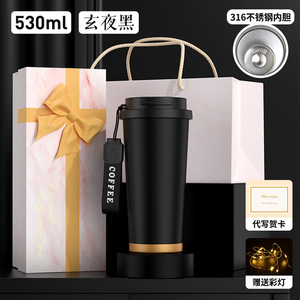 【玄夜黑】530保温杯来图定制+拉菲草+灯串+贺卡+礼盒礼袋
