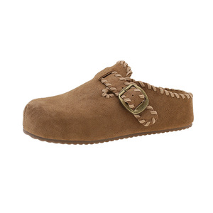 谷韵丨勃肯鞋女款2025年夏秋季新款厚底花边包头半拖鞋包头拖鞋女