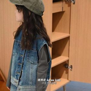 波拉bora韩国童装女童牛仔马甲洋气时髦春装新款儿童背心男童