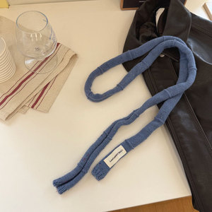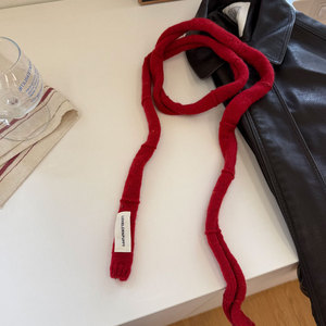 原创设计竹节小细条韩国细窄长款Y2k毛绒细围巾辣妹穿搭时髦长条