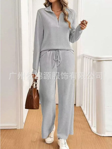 欧美外贸2025亚马逊秋冬款休闲运动套装拉链长袖卫衣阔腿裤两件套