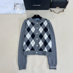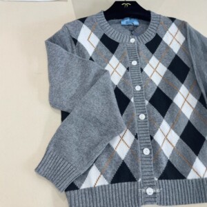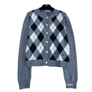 高版本P家25秋冬新款菱格纹针织开衫经典长袖设计适配多季穿搭女