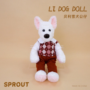 贝利雪犬棕犬泰迪狗毛绒玩具可爱公仔柔软玩偶穿衣背带裤儿童安睡