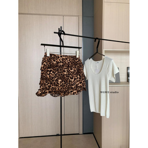 塞纳【WGWE】6423辣妹时尚复古豹纹半身裙荷叶边A字蛋糕短裙潮