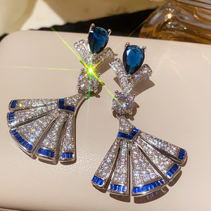 银针法式镶钻水滴扇形耳环轻奢高级感耳钉精致时尚耳饰设计感小众