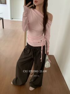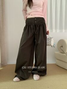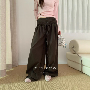 CXI 美式复古高腰伞兵裤宽松休闲垂感百搭长裤小众设计直筒拖地裤