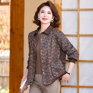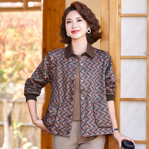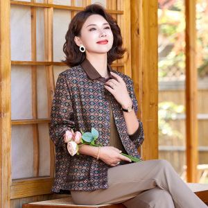 新款妈妈宽松时尚外套翻领夹克中老年女装显瘦洋气上衣女休闲衬衫