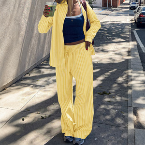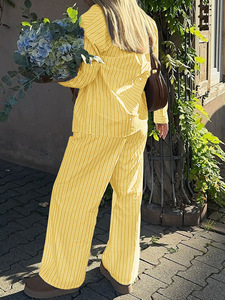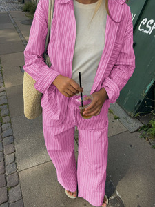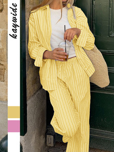 迪芸欧美休闲度假长袖衬衫直筒裤子套装女装2025秋冬亚马逊独立站