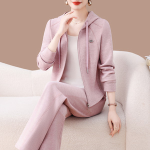 休闲运动套装女春秋2025新款时尚洋气妈妈显瘦连帽卫衣外套两件套