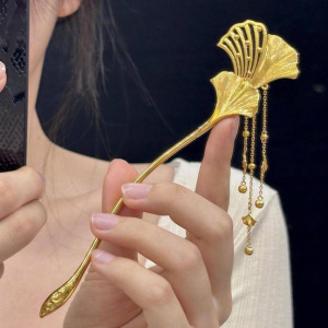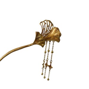 三生有杏发簪银杏叶流苏新中式国潮风古法鎏金金色步摇婚嫁发饰