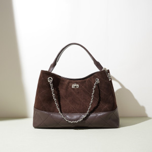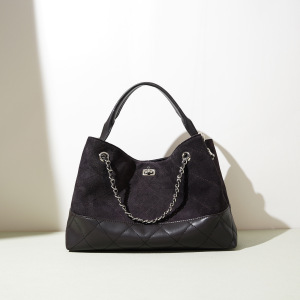 2025年新款复古撞色大容量通勤托特包包时尚百搭菱格腋下链条女包