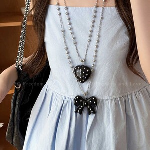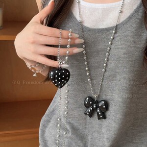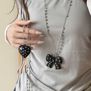 韩系波点蝴蝶结珍珠项链女款简约气质长款吊坠毛衣链小众设计配饰