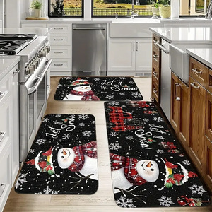 跨境姜饼人圣诞老人卡通风格地垫防滑耐脏厨房长条地毯地垫现货