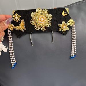 浅蓝色旗袍+头饰+鞋子+小配饰