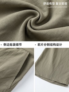 侧边分割拼接打褶休闲裤男秋季新款潮牌宽松直筒裤复古廓形长裤子