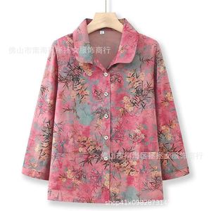 老年人秋装女60岁7080奶奶有口袋翻领冰棉衬衫中老年妈妈衬衣新款